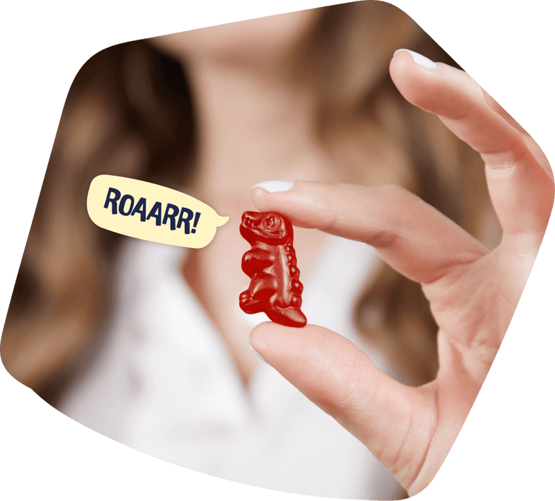 1–2 Dino-Fruchgummis täglich sorgen nicht nur für Begeisterung beim Naschen, sondern auch für eine zuverlässige Versorgung mit essenziellen Vitaminen und Mineralstoffen in Form von hochwertigen Verbindungen.